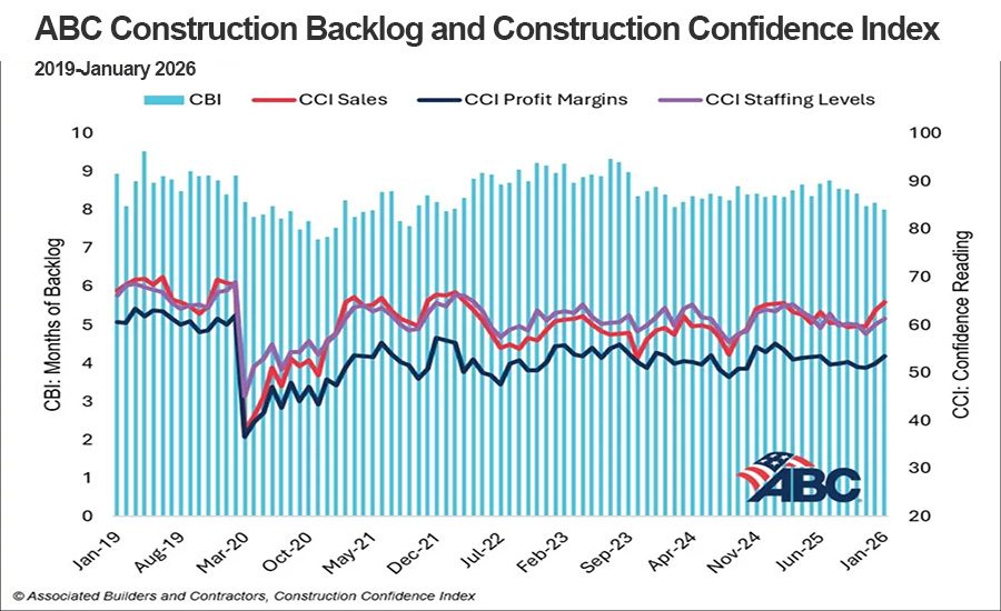Individuals in ABC’s Development Confidence Index survey reported elevated expectations for all three classes— gross sales, revenue margins and staffing—since December. Nonetheless, stated Basu, “ABC members are far much less optimistic about their competitors; 46% of contractors anticipate that different contractors will see their gross sales decline over the subsequent two quarters. Whether or not or not this private optimism is justified will probably depend upon the extent to which borrowing prices can decline in 2026.”