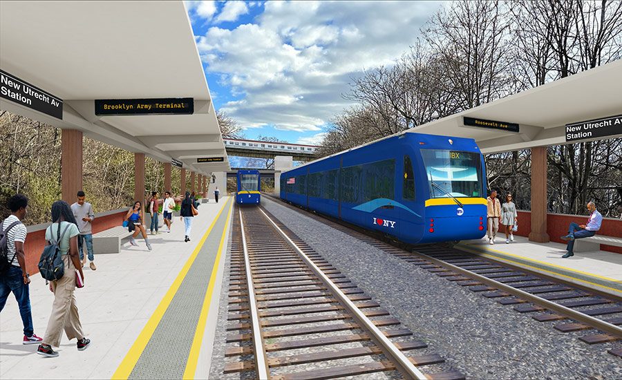The Metropolitan Transportation Authority superior plans to transform a freight line in New York Metropolis right into a commuter gentle rail. Known as the Interborough Categorical, the service will cowl 14 miles via Brooklyn and Queens and create 19 new stations on an current right-of-way. The design-build contract went to a partnership between Jacobs Civil Consultants Inc. and HDR, for almost $166 million.
